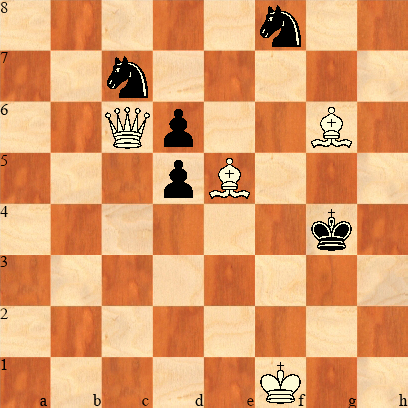 A 'KQBB vs knnpp' five-move chess construct composed autonomously by the prototype computer program, Chesthetica, using the Digital Synaptic Neural Substrate AI computational creativity method. Chesthetica can compose problems that might otherwise take centuries or longer for human composers to think of, so you may enjoy them right now. There is also no proven limit to the quantity or type of legal compositions that can be automatically generated. This position contains a total of 9 pieces. The largest endgame tablebase in existence today is for 7 pieces (containing over 500 trillion positions anyway) which means the problem could not have been taken from it regardless.