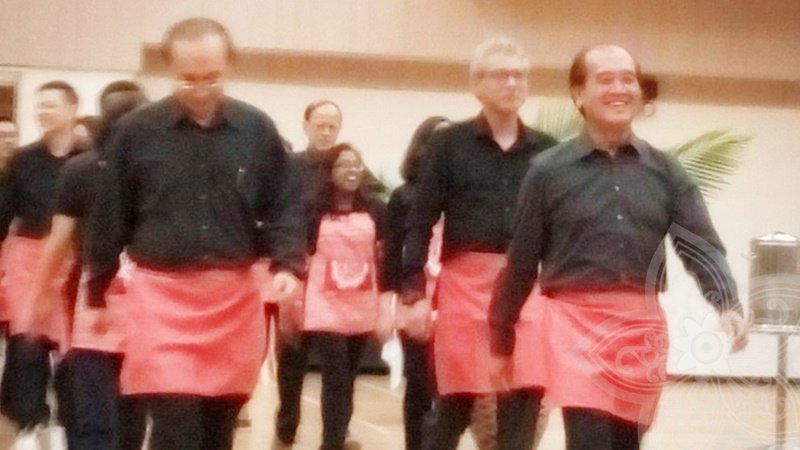 At this moment our beloved pastors all came out with red aprons and their biggest smiles as they walked in two files before started serving us food that has ordered for us.