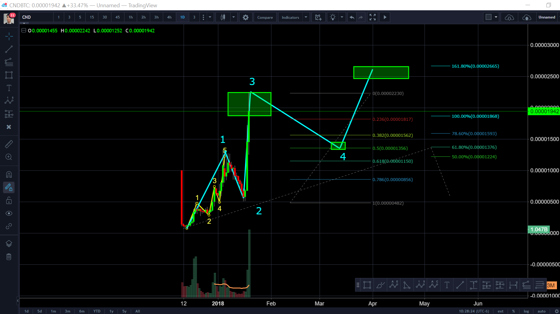 Hello, I'd be interested in a followup on CND. Consolidation was super fast. From my chart I'm seeing 4.4-5k sats target in the near future. Thanks.