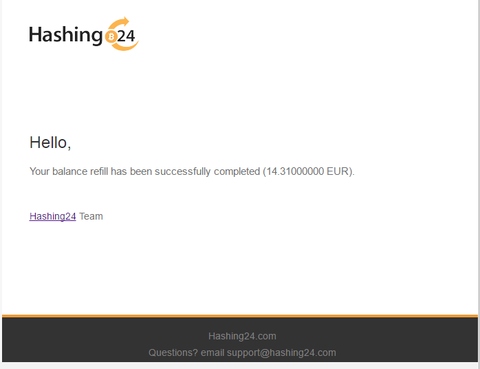 After clicking on “buy”, you can choose how you want to pay it. If you pay with bitcoin, you get a deposit address where you must send the amount of bitcoin of the choosen contract. After the payment is completed you receive an e-mail with the confirmation of you “balance refill”. @ Hashing24 you pay for a “lifetime” contract at this hashrate, but they state clear that they can stop it as soon as mining is not profitable anymore and they also stop it as soon as you balance has no funds to pay for the daily fee. Yes! You must pay an additional fee for the costs of the electricity, etc… it is at 0.003$ a day and they take it automaticly from your daily bitcoin payouts.
