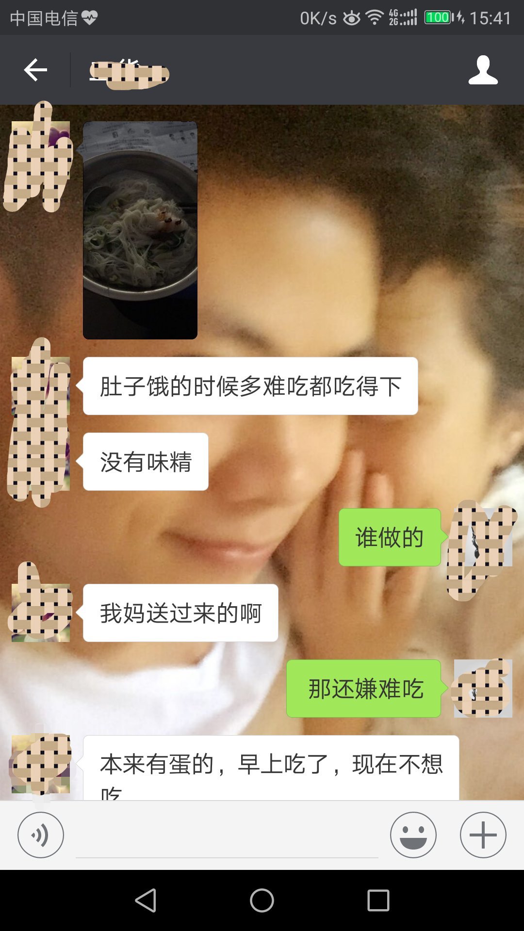今天中午岳母给她送饭,好像没有加味精,虽然知道味精吃多了不好,不过对于我生活的这个区域来说,口味还是偏重的,所以清淡的食物不是很下的去口~虽然满满的一大碗,毕竟是亲妈做的饭菜,还是吃光光了,能吃就好(我上次也煮了一次面,被嫌弃的体无完肤!!!!)