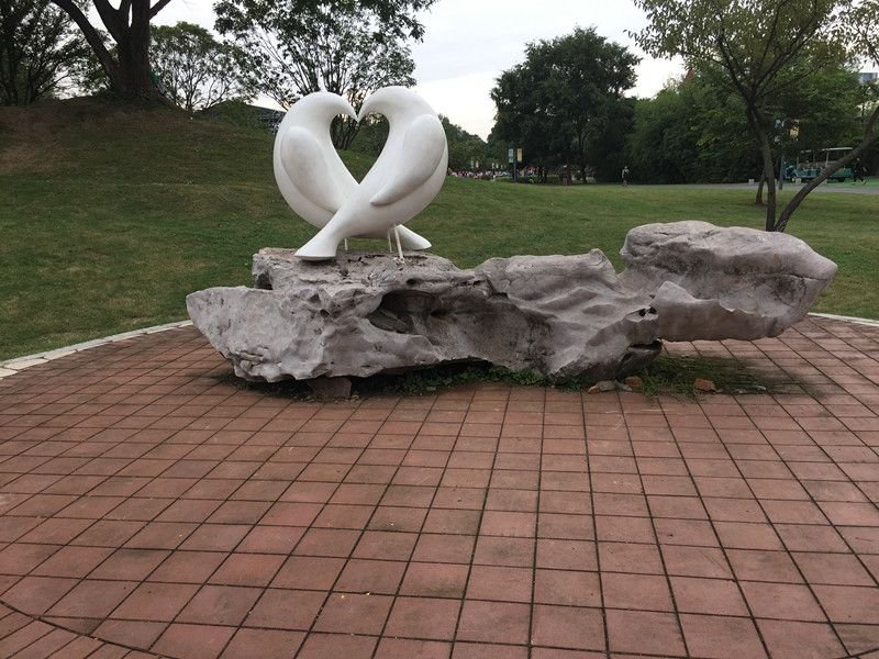 这个公园,布置很精细,一草一木,一如她的名字。公园的中央,有两只鸽子,对视而立,组成了一个心形。浪漫而有情调。就像这个公园的标志,告诉人们这个公园独特的魅力。