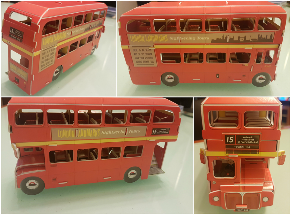 家庭日的親子(?)活動 Part 1jojoga (45)in #cn • 8 years ago 很早以前在英國買的一個紙品擺設,算是我買給家裡的手信? 哈哈,之前家裡飾櫃一直沒位置所以沒拆封,前陣子終於給家裡做了個大大大掃除,騰了空間,就跟爸爸媽媽合作把紙巴士砌出來了~ 包裝是這樣的,在倫敦書店紀念品店都有賣。價格,忘了,6鎊左右? 所有內容: 過程圖。 差不多完成了! 製成品要360拍是常識吧! 有點小時候父母給我買玩具,長大了買玩具跟爸爸媽媽一起玩的感覺。跟家人的quality time ^^. #life #busy