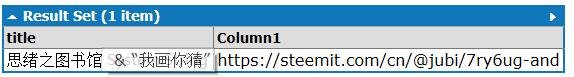 于是查询语句改为:SELECT '< a href ="'+'https://steemit/'+category+'/ @'+author+'/'+permlink+'">'+title+'</a>' FROM Comments WHERE 查询结果如下: