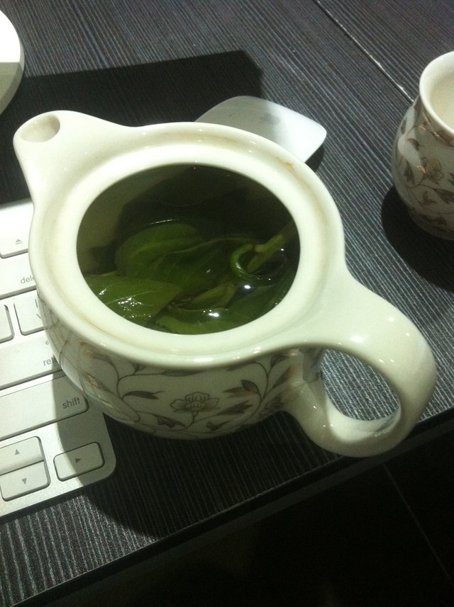 我是用新鲜叶子泡茶喝了一天,用庐山泉水(坚持了7年,自从小孩出生,一直坚持家里用泉水,每10左右天去山上拉一回,用来泡奶,现在已成习惯),
