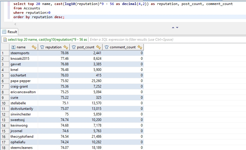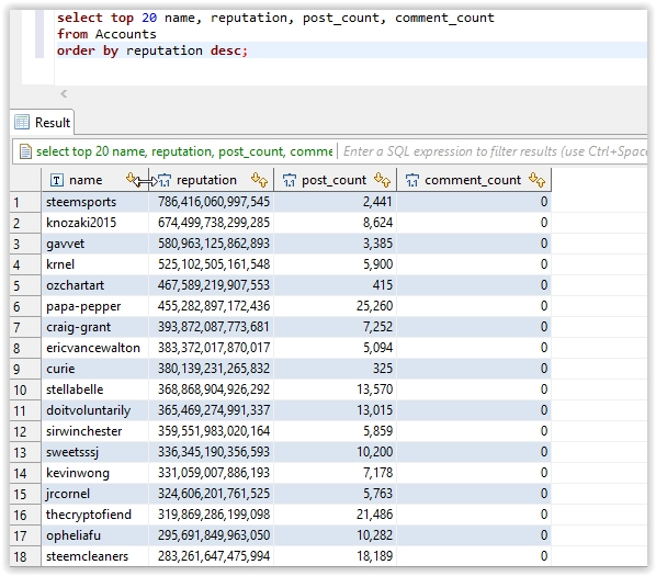最近在写一些有趣的Steem相关程序。尝试了一下Steemsql,感觉非常好用。就像 @jubi 曾经提到的一样,很多对IT技术不是很熟悉的朋友经常想要查询一些Steem的数据。因此就萌生了写一个教程的想法。这一系列教程主要是针对小白们的,欢迎大神们指正。