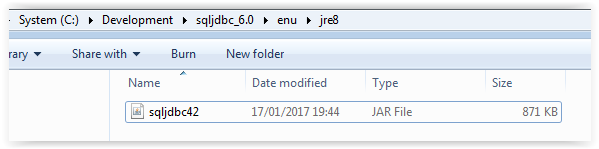 下载完毕后解开压缩包,会看到sqljdbc42.jar这个文件。