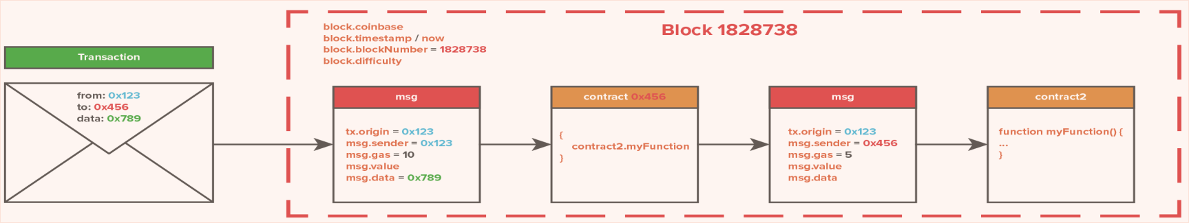 - Deploy된 컨트랙트가 사용되는 예는 아래 그림에 잘 나타나 있습니다.