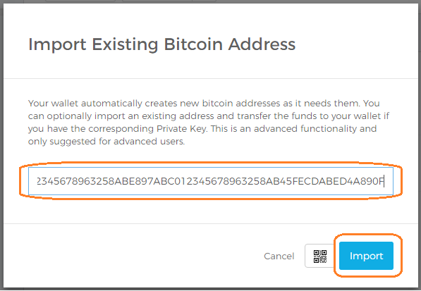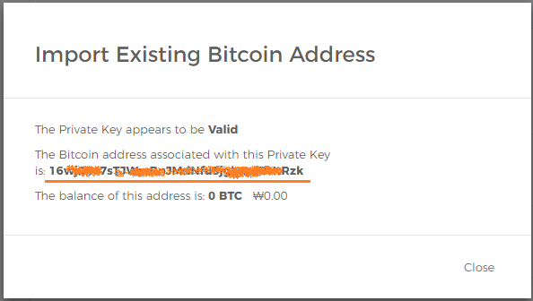 네모 칸에 64글자의 16진수(0~9, A, B, C, D, E, F) 문자열을 임의로 만들어 넣고 [ Import ] 선택합니다.