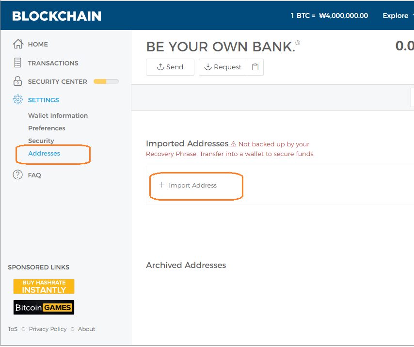 [BYTEBALL] Blockchain.info 지갑을 이용하여 바이트볼 지갑연결 하기