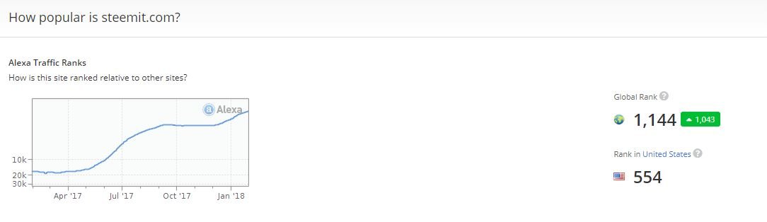 최근에 스팀잇이 더욱더 주목받고 유저도 늘어나고 있어 점점더 스팀의 가치상승에도 큰 도움이 될 것으로 기대됩니다. 참고적으로 알렉사에서는 1144위, 미국내 순위 551위로 시밀러웹보다 훨씬 더 좋은 점수를 받고 있습니다. 제가 알고 있기로 알렉사나 시밀러웹같은 기본데이터 분석 및 비교툴의 경우 일정 오차범위가 약 30%정도로 알고 있습니다. 즉 100만 PV가 있다면 실제 70-130PV정도로 봐야 한다는 이야기입니다.
