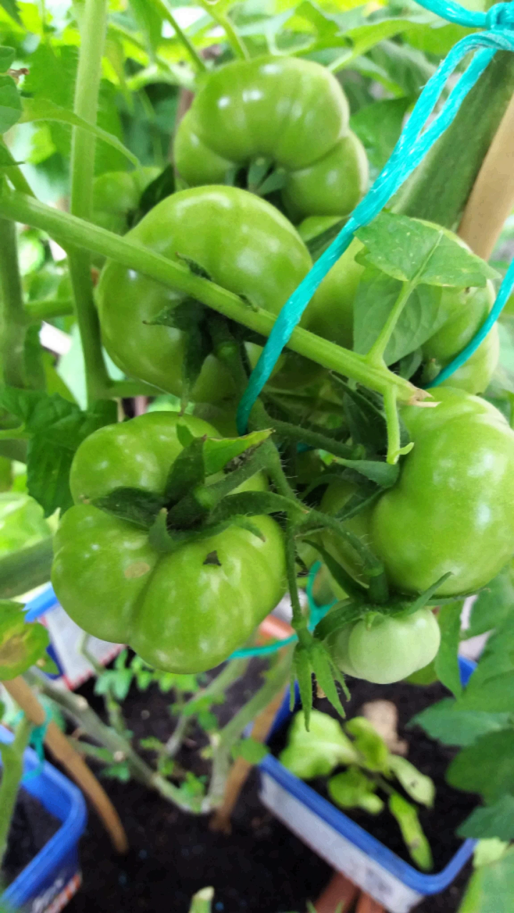 It's Thursday and the color theme for today is green. So I saw my neighbor´s tomatoes that are still raw and took photos from her garden that is located beside our house.