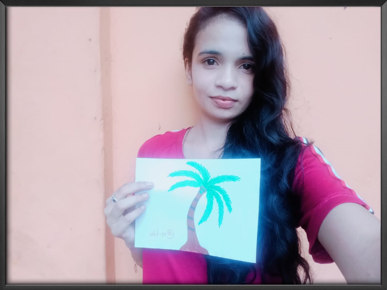 Hola amiga, un dibujo que nos compartes de una palmera, mostrando el paso a paso y finalizando con la muestra del selfie.