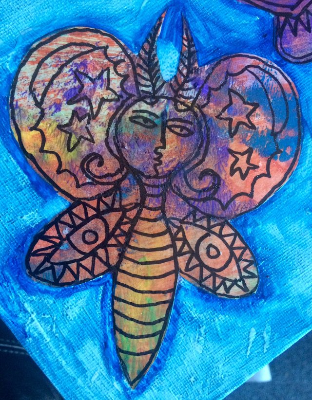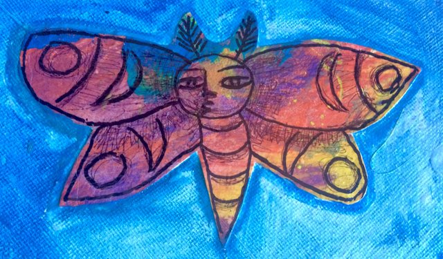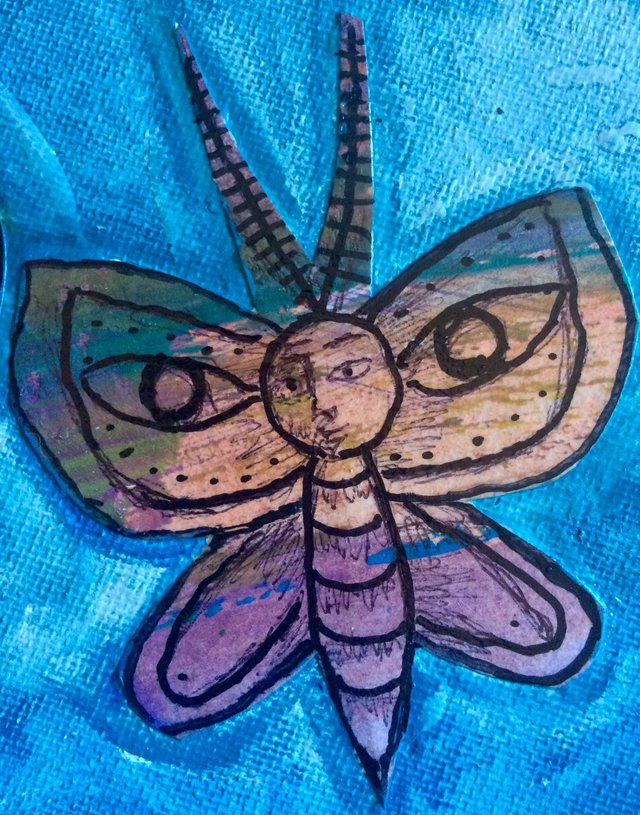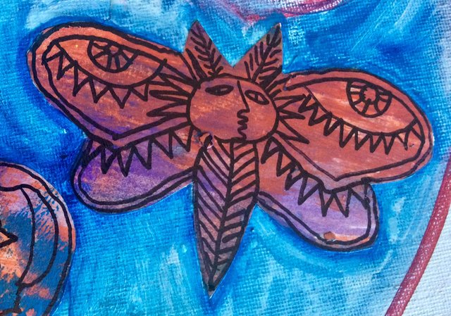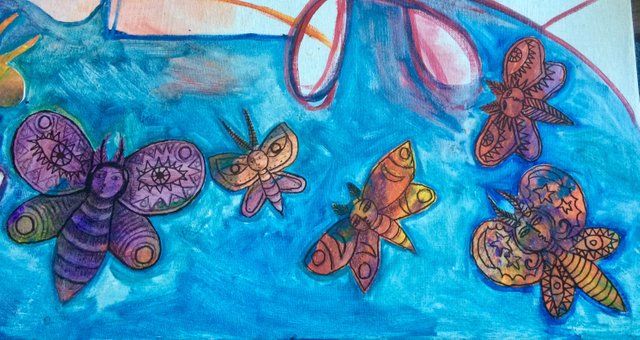 Hence the subject matter of this painting...we are moths who think we are butterflies and we are trying to get heat from a limited source when we could get heat from within and love each other...