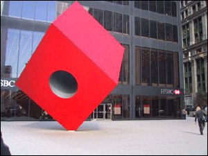 Called the Red Cube this HUGE and popular sculpture is located in front of 140 Broadway in the Financial District, lower Manhattan.
