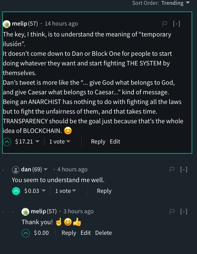 This is where Dan Larimer’s humbleness shines above lots of people and shows who he really is.