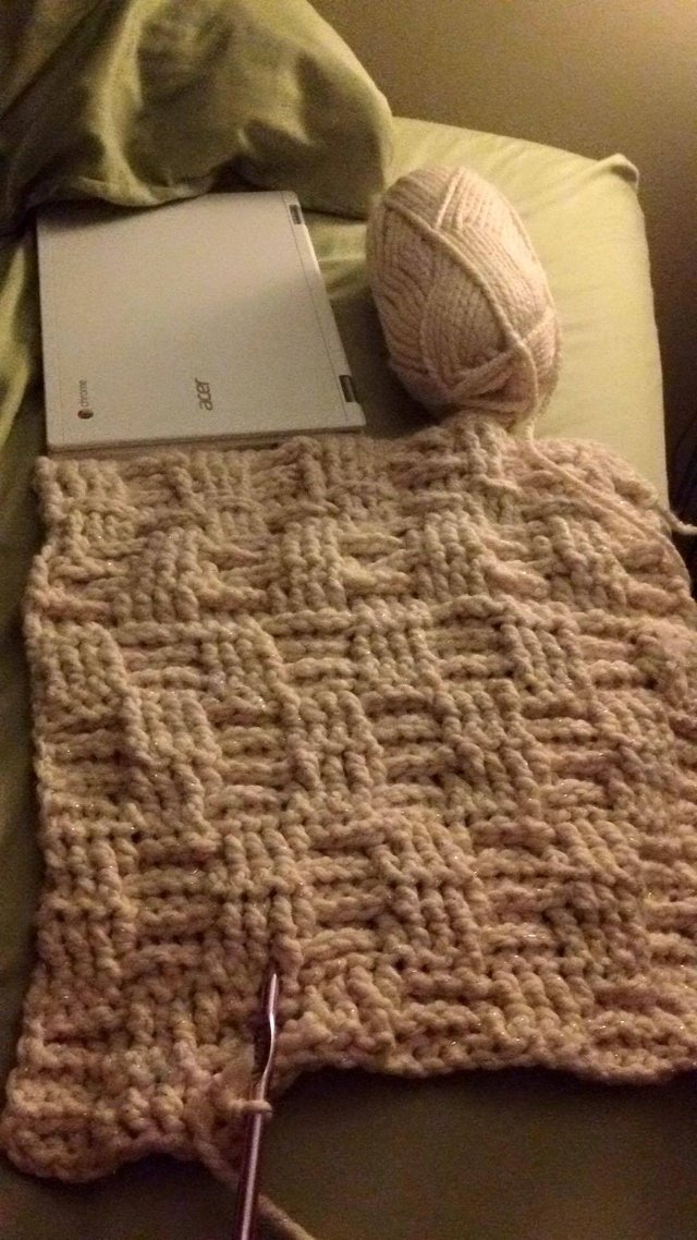 Here are the three time laps photos I have of my creation of the Basketcase Sweater.
