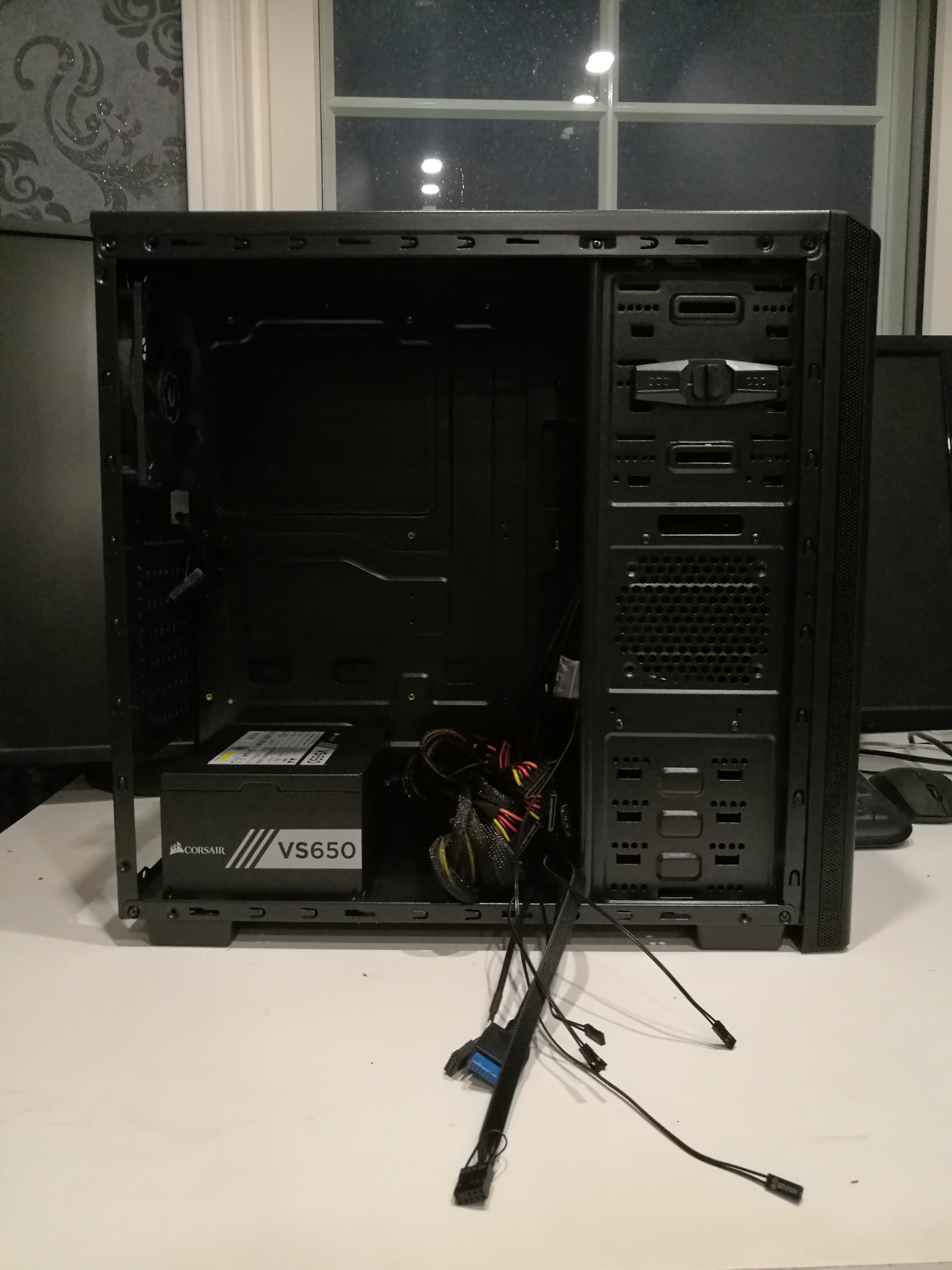 Starting of with the shell and the power source for the build. I chose the BitFenix Nova case as the base for the build. (https://www.bitfenix.com/global/en/products/chassis/nova/). A cheap box with enough space and opportunities for future upgrades. To power the rig I chose the Corsair VS650. Same as with the case I wanted to be sure that I will have enough power for future upgrades. Nothing tricky here.