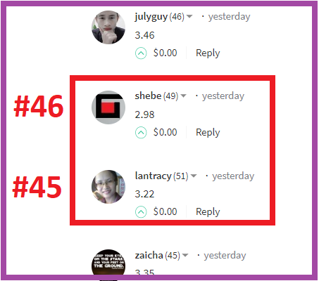 Your spot at #46. @lantracy got her spot at #45 and she was the last player of the contest. It said in the game rule: