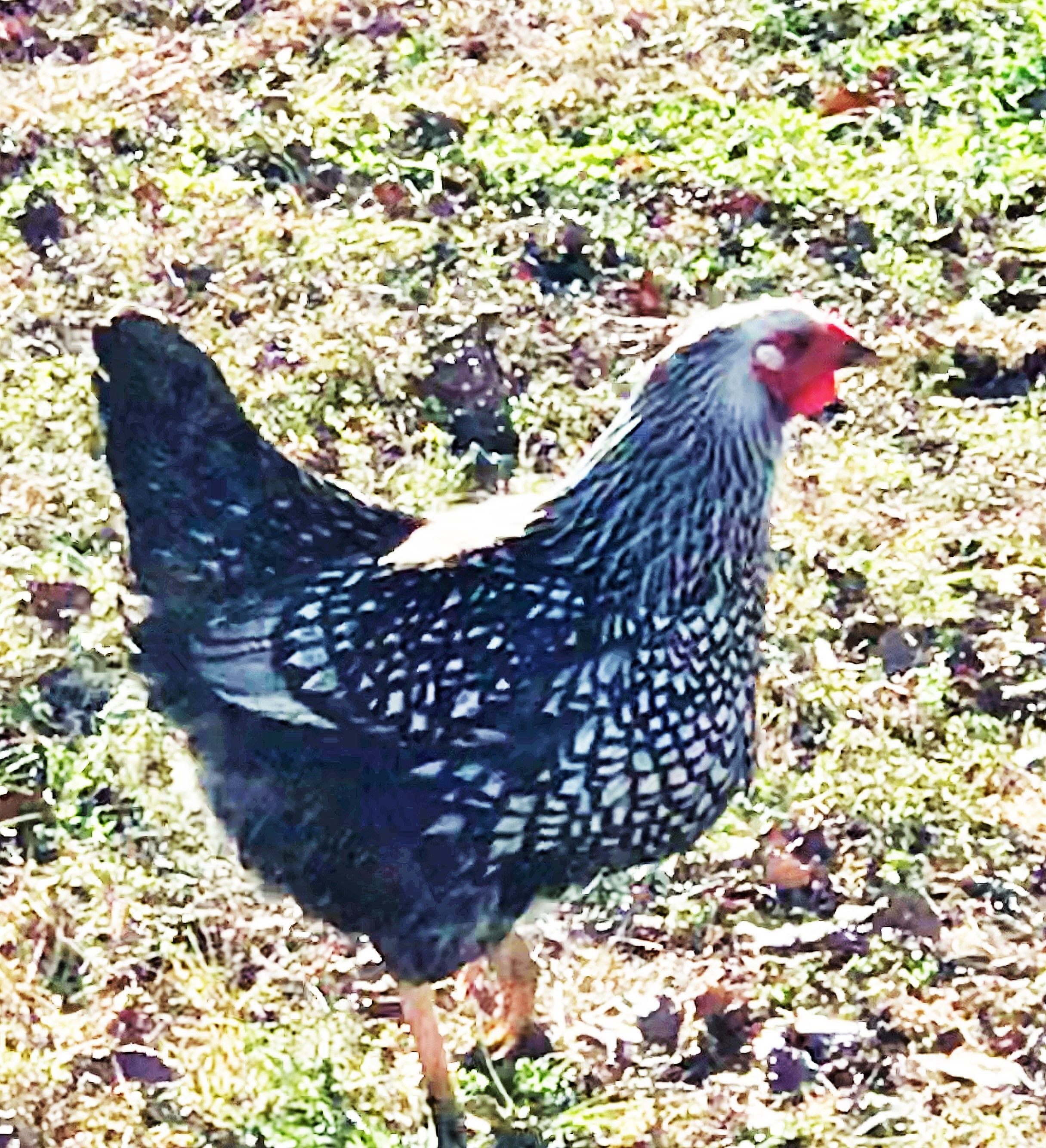 @beatitudes8 chicken is a silver laced wyandotte.