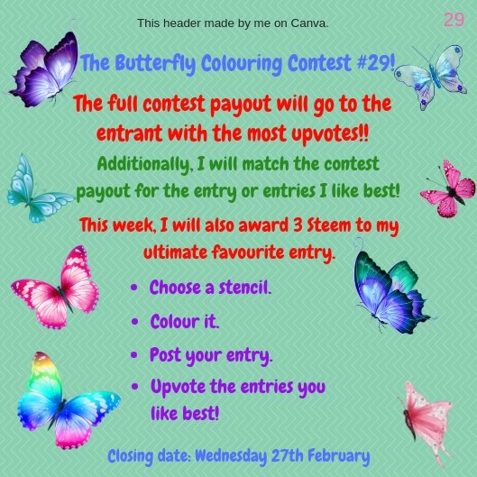 • Make a post for your entry with the title 'Butterfly Colouring Contest #29'.