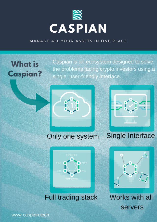 Caspian is a platform designed with the function of creating a more comfortable and pleasant ecosystem for the user, providing all the necessary tools in the world of cryptocurrencies for a good management of these digital assets.