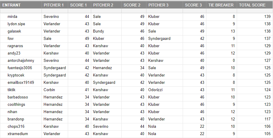 Pick the 3 pitchers you think will score the best