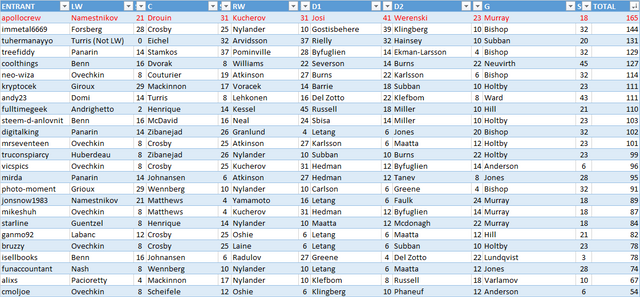 Here Are The Results For NHL - THE ULTIMATE LINEUP CONTEST! October 17th, 2017