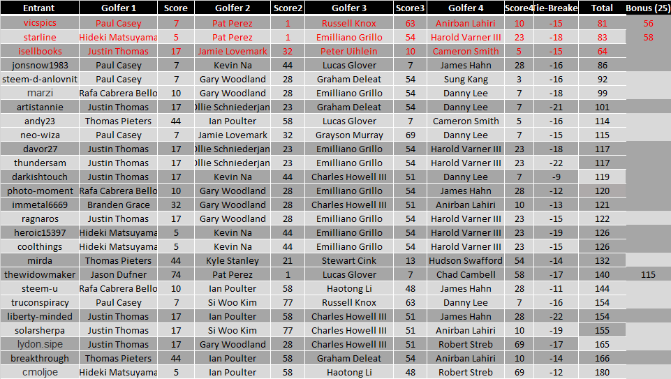 Here Are The Results For PGA - CIMB Classic Contest