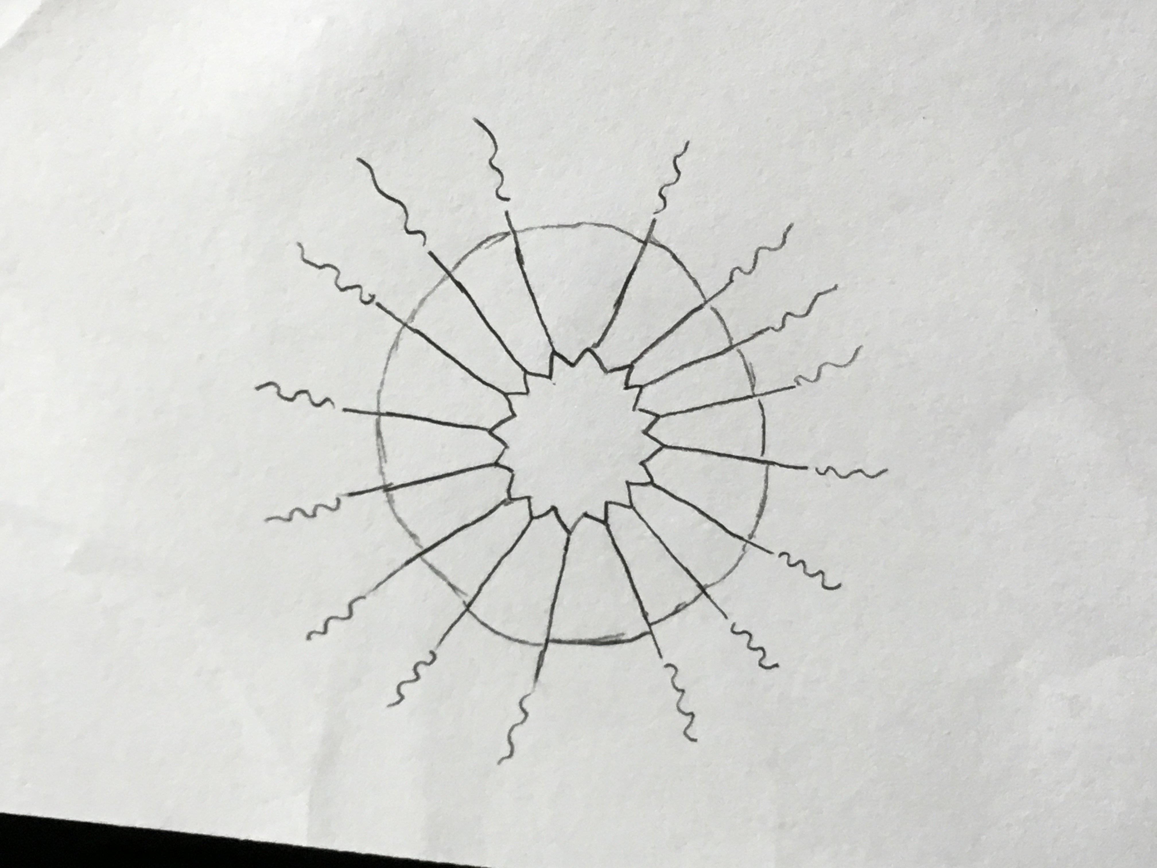 Here's my 50 ways to doodle a sun. I'm exceptionally proud of the sun in the upper left corner. Below the squared sun and a little bit to the right and up from the sun with the triangles. :D