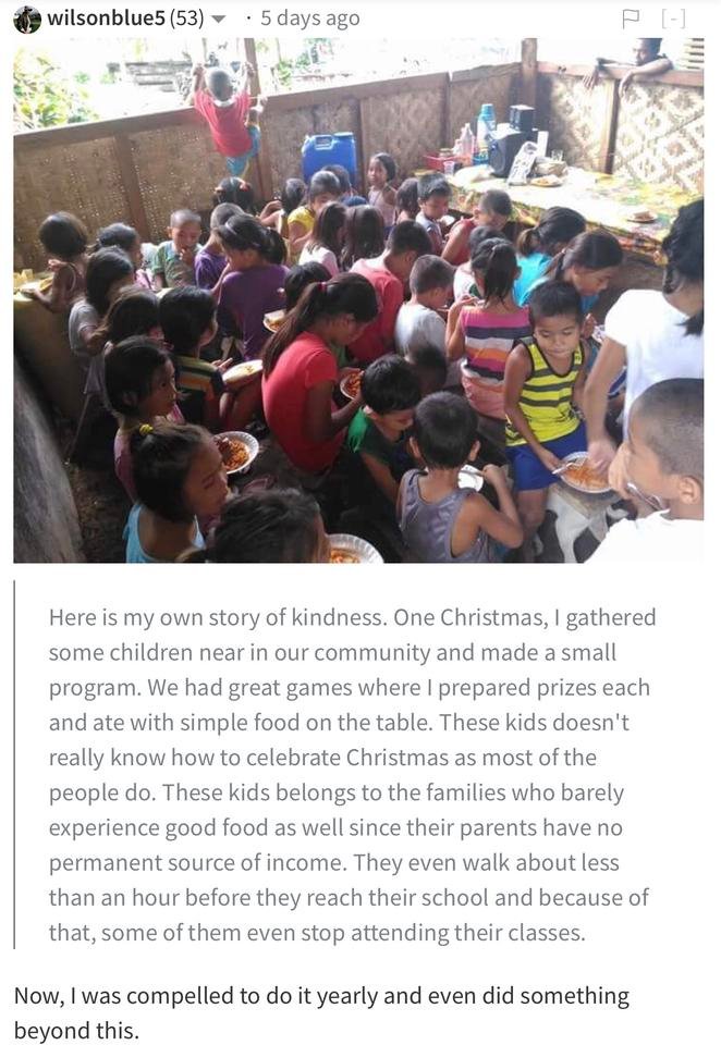Thank you very much for participating guys! I am so grateful to each of you. I have read all the stories and I am deeply moved to see acts of kindness in different forms. By the way, I was only going to reward 10 stories each round, but because this is record breaking, I decided to reward all the entries.