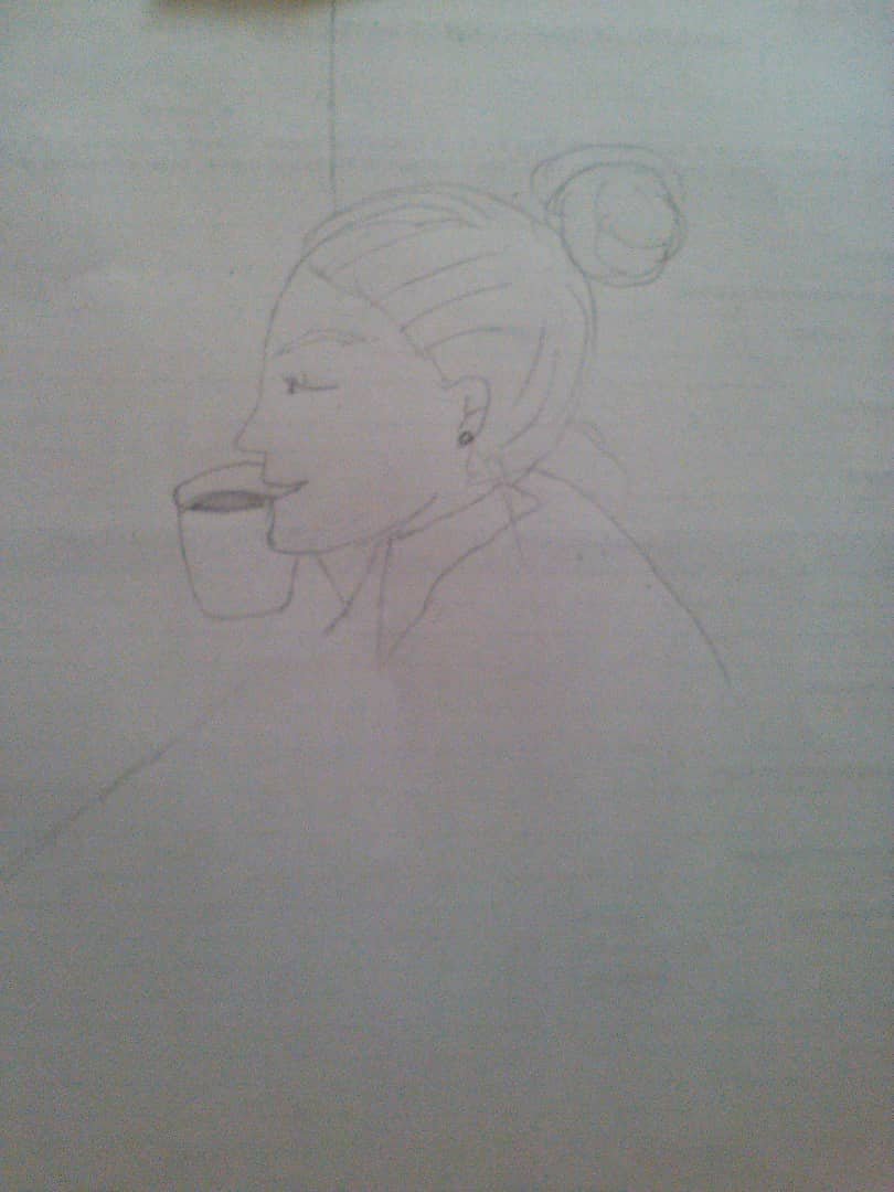 Rosa looks out her window, it's Saturday, she gets up at 9 in the morning, she has not taken off her nightgown and she's just getting up taking her coffee while she smells it, she feels full of energy.
