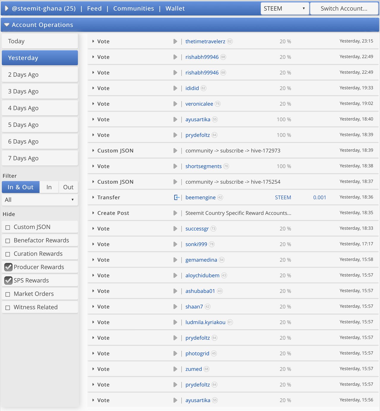 These accounts follow the votes of the Country Representatives on daily diary posts, matching the voting power percentage selected by the Country Representative to upvote posts.