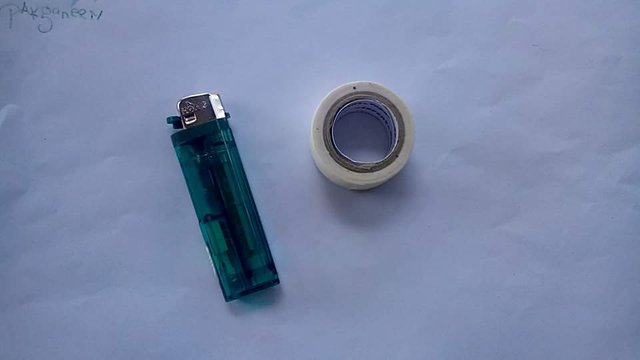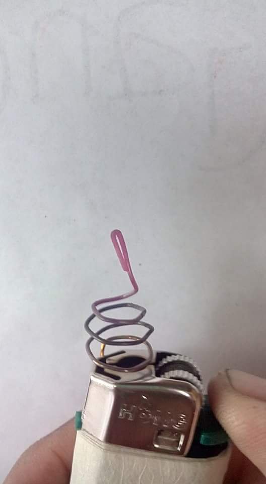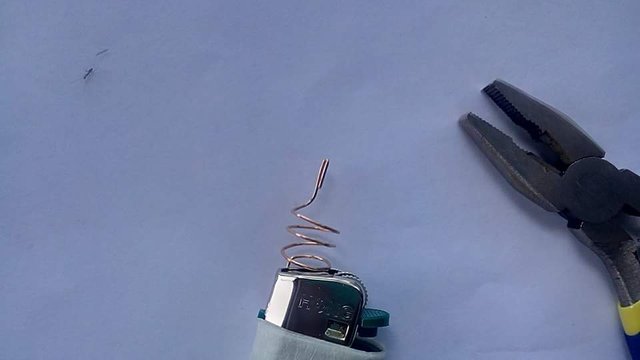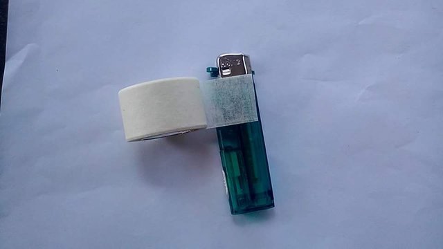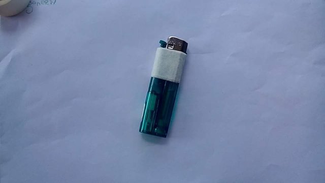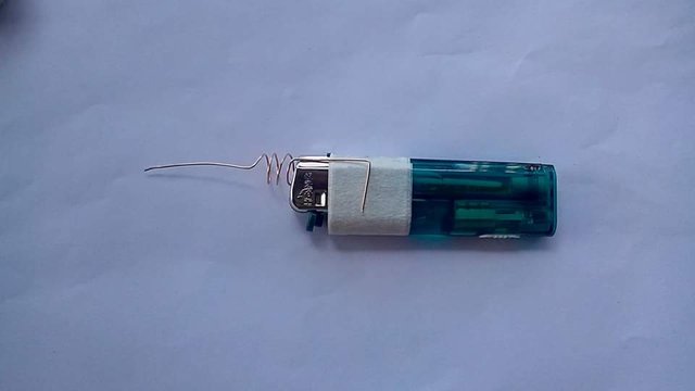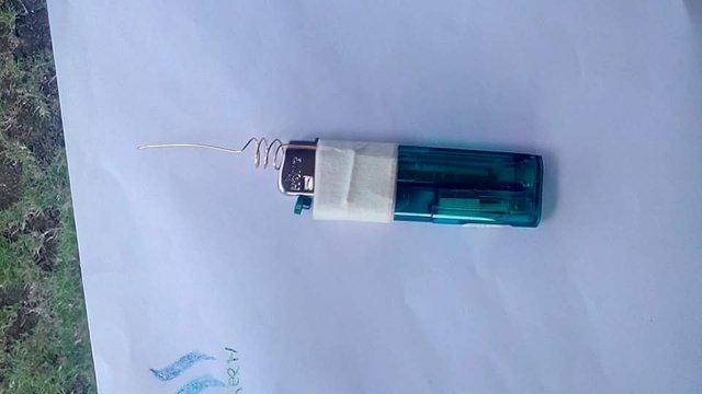And now lets put the wire on the lighter, make a curve on the wire and tape it.