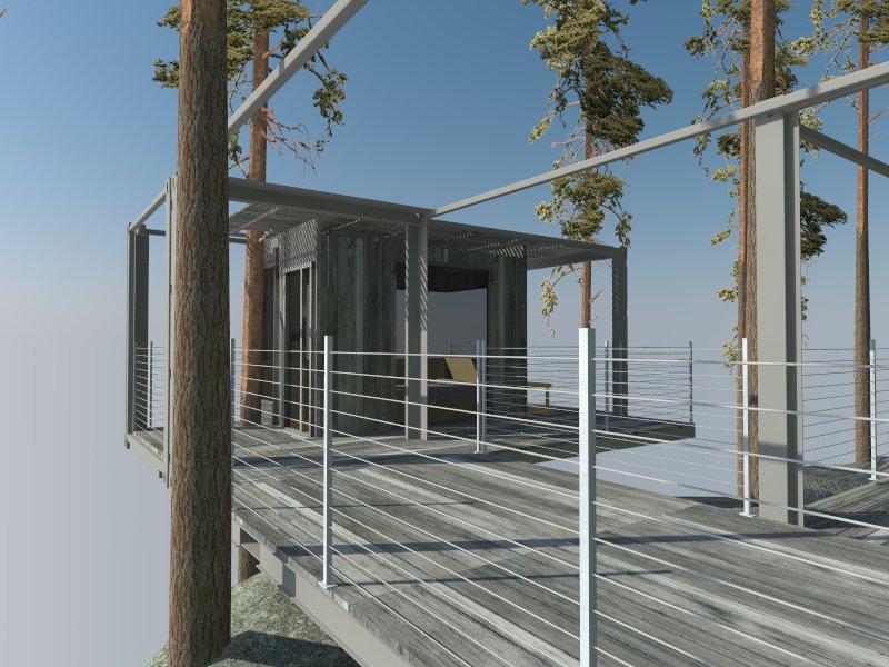 hi steemit, today I show the design of the tree house. This tree house is located in Red Canyon Utah. it is cantilevered over the cliff located at the top of the tree and not be a burden to the tree itself, because the material used is a lightweight material.