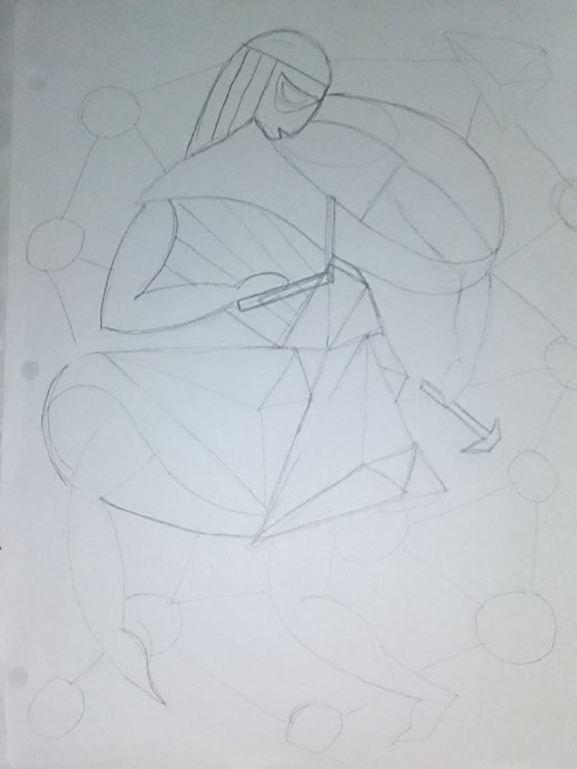 In this opportunity I wanted to represent the sketch of the “Tron Miner”, taking the structure of one of the characters previously sketched by Meller, and adding the elements that represent the undermining on the blockchaing, as well, the blockchaing symbolism on the background of the main character.