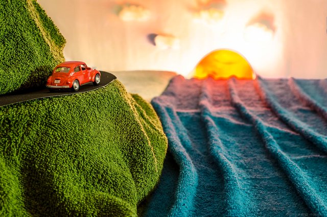 I decided to do what every photographer needs to do, be creative, so I had some miniature carts and some lego figures to start, I only used the scenery, I decided to improvise, I used everything in my house, but 80% of the scenarios in the photos below are composed of towels, that’s the same simple towels, in the group, many of my photos, so I’m expanded and transforming into a personal project, see the following photos.