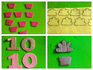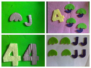 Draw the numbers from 0 to 9 on a sheet of paper, you can trace it from the computer, if you know how to draw much better, then cut them out to make some cardboard templates, in this way it will be easier to elaborate them on the felt, the image shows the complete process.