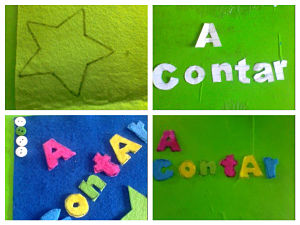 To make the cover we need to draw, cut and paste the letters (To count) with different colors, in addition to it we need a star, (this one was made in green felt) and on the left end buttons were paid green and white.