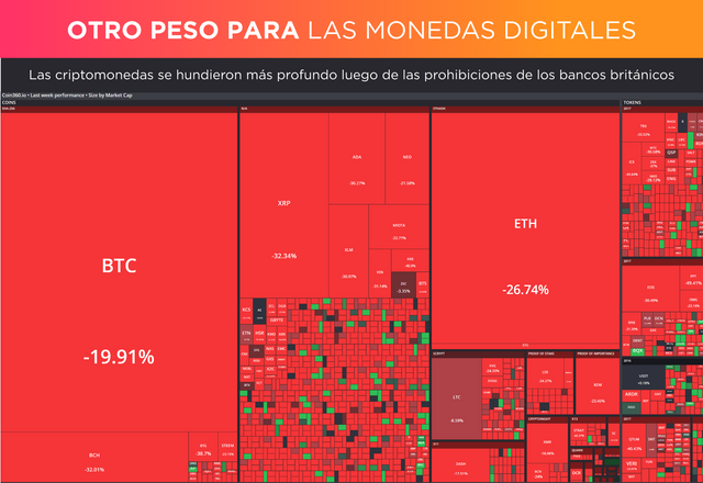 Como ya lo habíamos dicho la semana pasada, las criptodivisas han estado retrocediendo de manera pronunciada desde sus máximos históricos. Esta caída se hizo más profunda luego de que el banco británico más grande siguiera a sus homólogos estadounidenses JP Morgan Chase, Bank of America y Citigroup en su decisión de no permitir las compras a crédito de las monedas digitales.