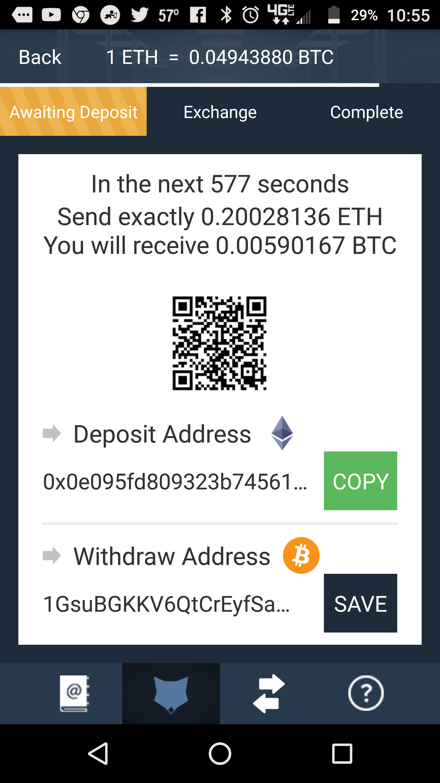 And here is the same transaction for the same amount within the wallet. As you can see, this is a shape-shift issue