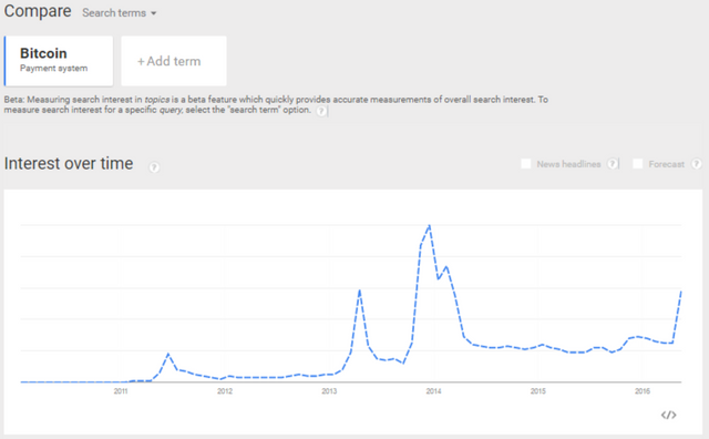 Interesting. Aside from the unmasking and re-masking of the wannabe Satoshi, Mr. Wright, there hasn't been much real news lately. Online searches usually follow the price, but that hasn't increased too fast for a while. Must be some other regional news here and there.