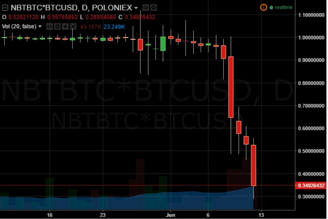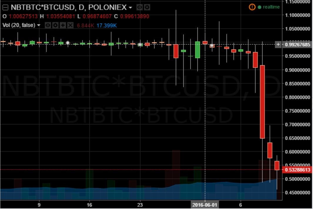 So in the last post on the 1st of June https://steemit.com/bitshares/@steempower/warning-nubits--the-price-stable-currency- I warned that the liquidity of the nubits USD peg was dangerously low and their attempt to recoup BTC to support the peg by selling NuShares (Tier 6 – Lender of last resort) was in progress and had already caused quite a large drop ~ 50%.