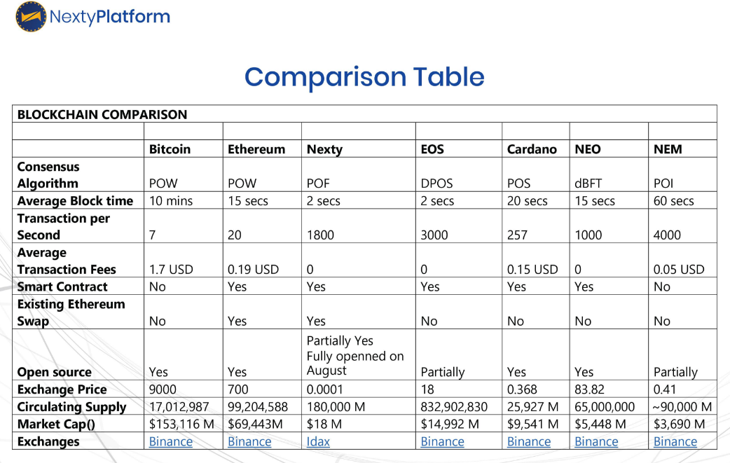 Nexty Platform is built upon speed and accuracy of transactions being carried out on the platform. Below is a picture that shows the illustration of Nextycoin's speed of processing in comparison to other payment systems.