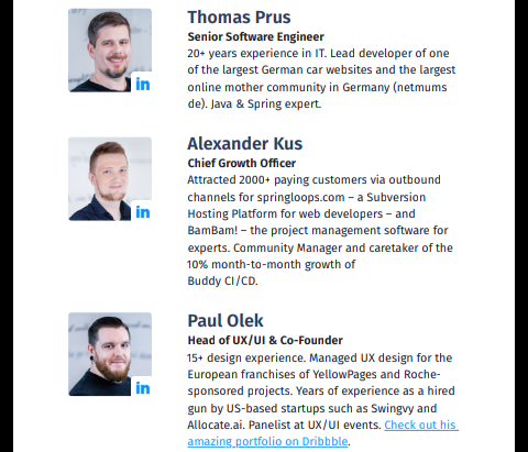 Buddy has a very experienced and strong team led by the CEO, Product Manager and Co-Founder, Simon Szczepankowski, a SaaS entrepreneur with more than 15 years of experience in IT. Simon has previously initiated springloops.com, a Subversion hosting service for web developers that attracted more than 5,000 customers from 120 countries and has managed IT projects for reputed names such as the divisions of the Dutch Air Force, KLM, Mercedes Benz NL , Ford NL and Merck PL. He is also one of the few Premium partners of Google AdSense in Poland and author of the youngest debut of the IT book in Poland (Windows XP Optimization, 2003). The technical head of the team, Raphael Sztwiorok, has a very solid technical background and has managed large GIS and Big Data projects for the Polish Army and the Norwegian Defense Acquisitions Division through Techmex SA.