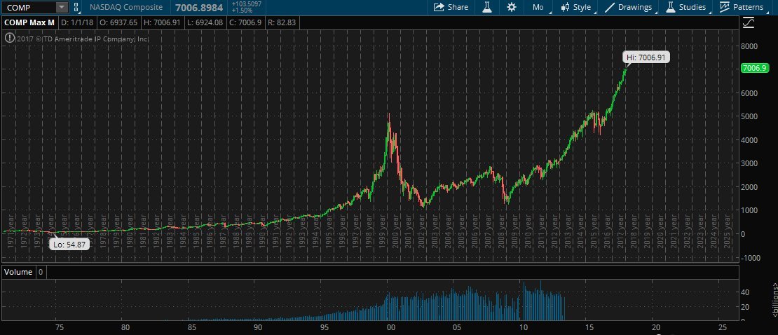 As we all know Bitcoin has been on a massive run in the last year. The recent crypto craze has helped tremendously. In the month of December Bitcoin touched roughly 20k USD on multiple exchanges. This was enormous considering at the same time last year Bitcoin was at roughly 800 USD. My thoughts on Bitcoin are… If you look here at the Nasdaq Composite