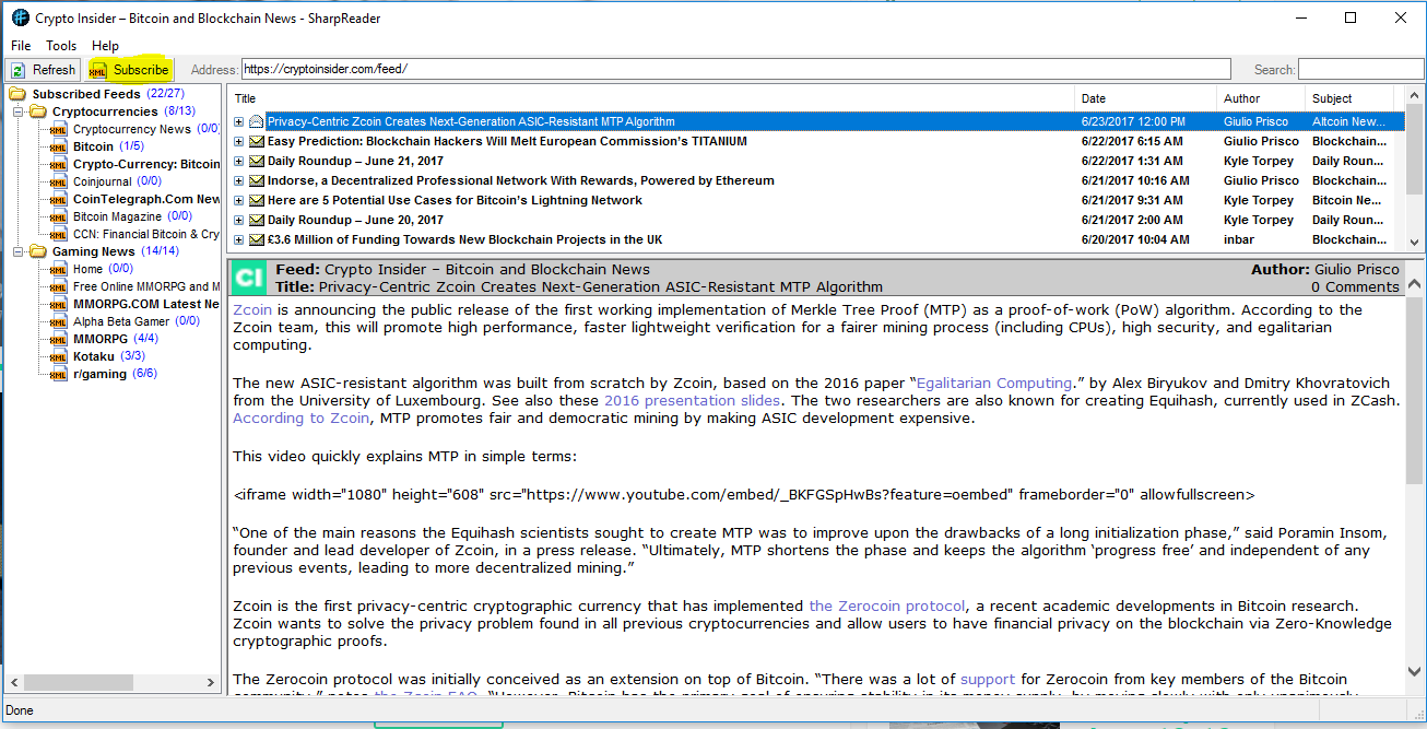 I am going to give you an example of what RSS Feed on Crypto looks like: