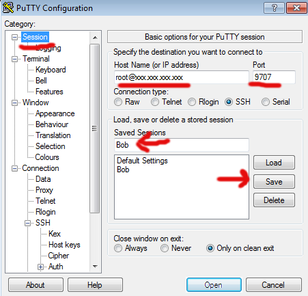 Now, when you load putty you can just click on 'Bob