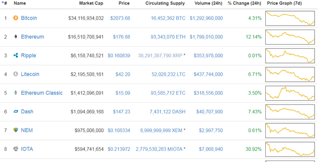 Bitcoin went down to almost $1,900 not long ago but it's now at $2,073.