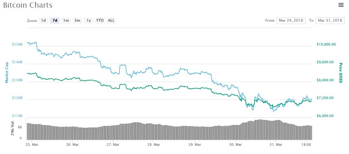 Bitcoin (BTC) is above $7,000 again, trading for around $7,140 and up over 2 percent over a 24 hour period to press time. BTC saw a 24 hr low today of $6,623, and is currently trading 8 percent higher.